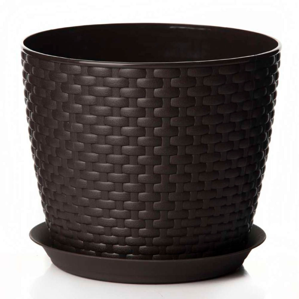 Кашпо Ротанг 2л d155мм с поддоном, коричневый ротанг