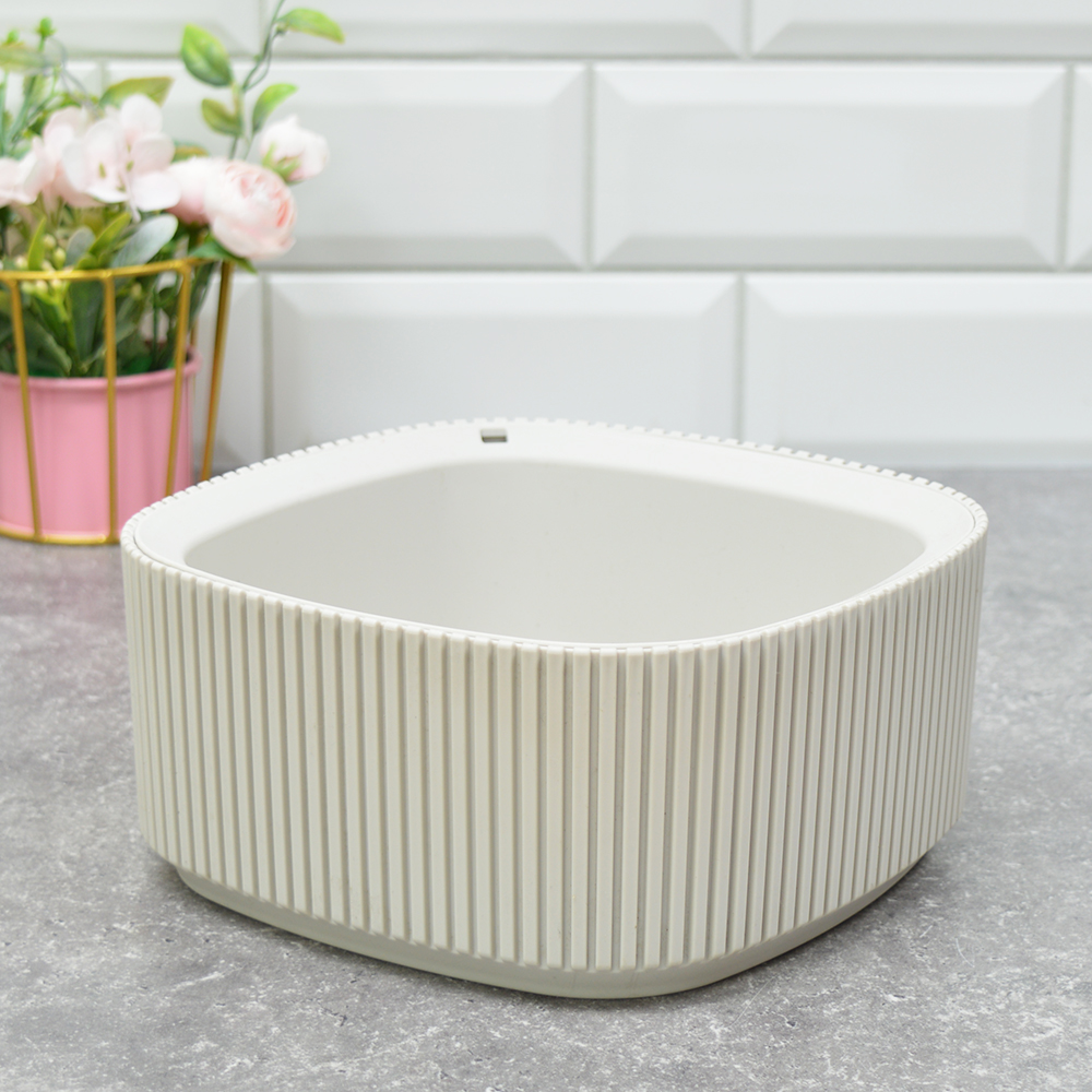 Кашпо Стрип 1,6л 20*20см со вставкой, кремовыйЭффектная фактура на стенках кашпо создаёт красивые блики на поверхности, впечатляет, увлекает и завораживает.Кашпо состоит из двух частей: корпуса и поддона — используется для сбора лишней воды. На кашпо между корпусом и поддоном есть щель, благодаря которой лишняя вода испаряется и не застаивается.Объем - 1,6 л.Заключаем договора по 44 ФЗ, 223 ФЗ