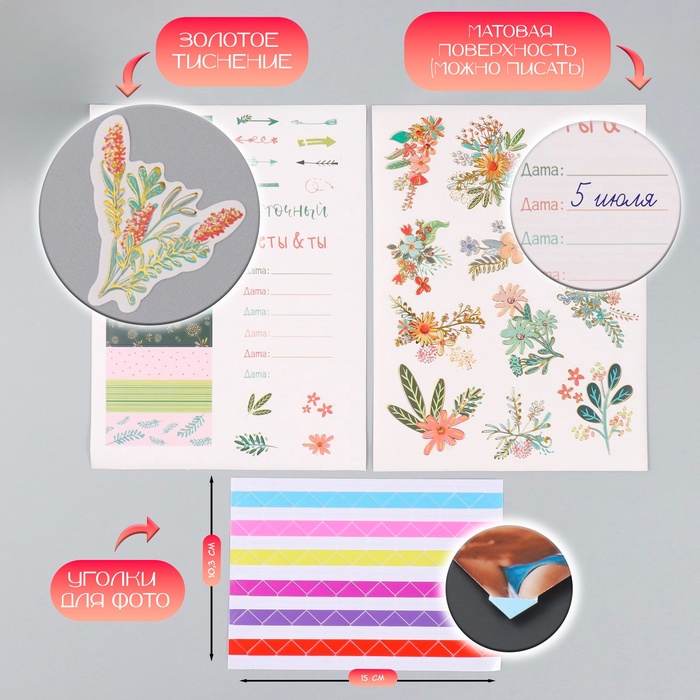 Фотоальбом на кольцах 25 листов Keep memories «Цветочный. Цветы & ты», с наклейками, 19×27×3 см