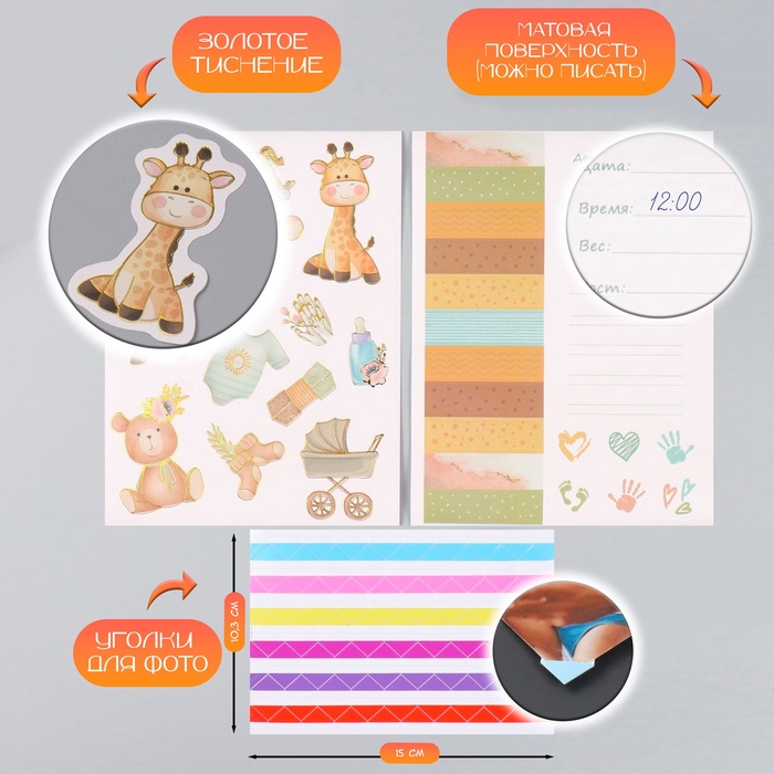 Фотоальбом на кольцах 25 листов Keep memories «Для малыша. Первый альбом», с наклейками, 19×27×3 см