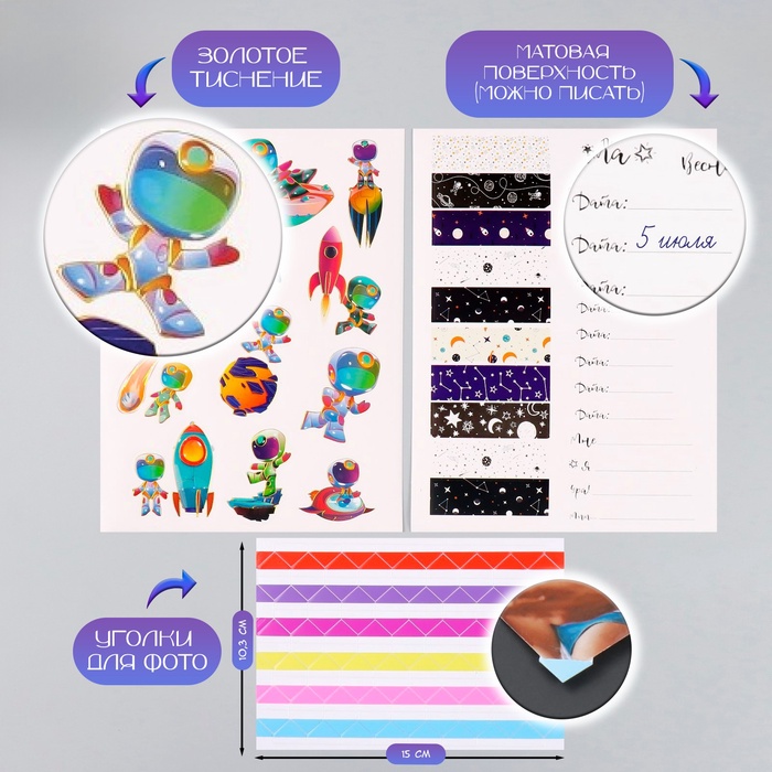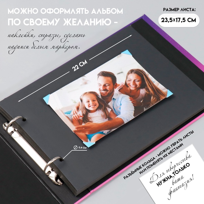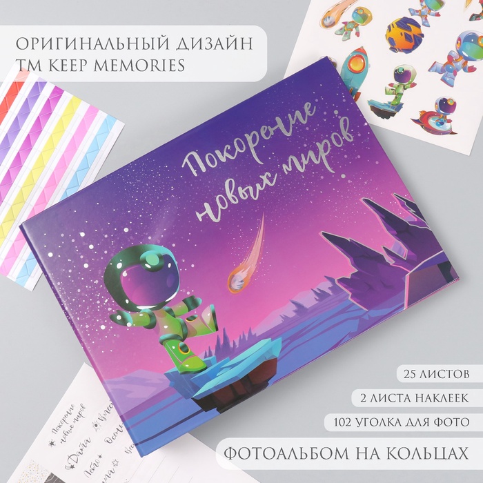 Фотоальбом на кольцах 25 листов Keep memories «Покорение новых миров», с наклейками, тиснение серебро, 19×27×3 см