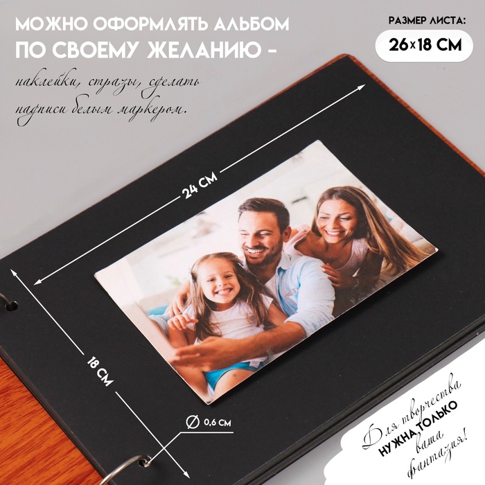 * Прочная обложка из дерева придаёт альбому солидность и долговечность.