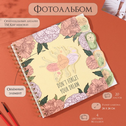 Фотоальбом на спирали 20 листов «Бабушка», объёмный элемент и 4 вкладки, 24×24 см