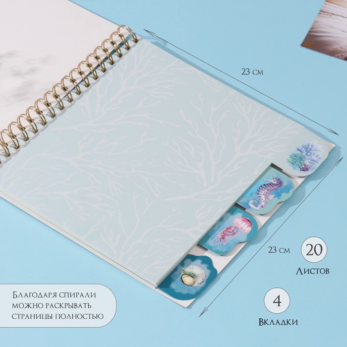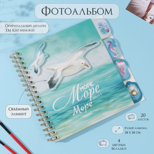 Фотоальбом на спирали 20 листов «Чайки», объёмный элемент и 4 вкладки, 24×24 см