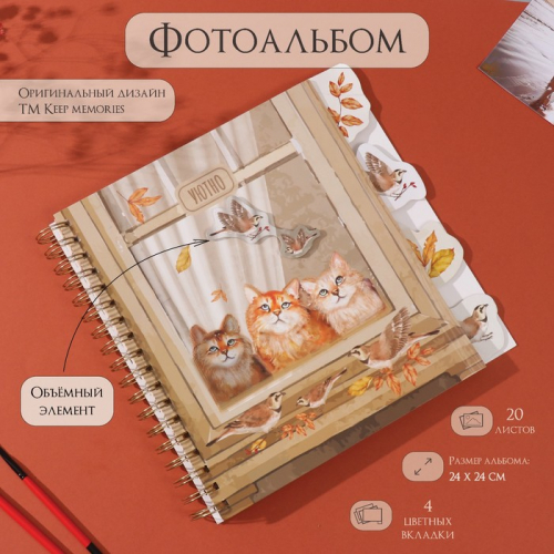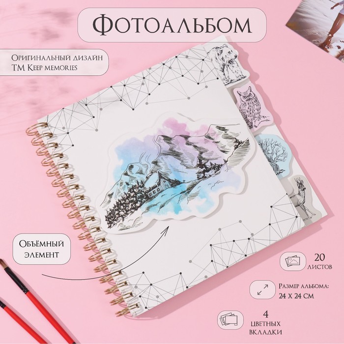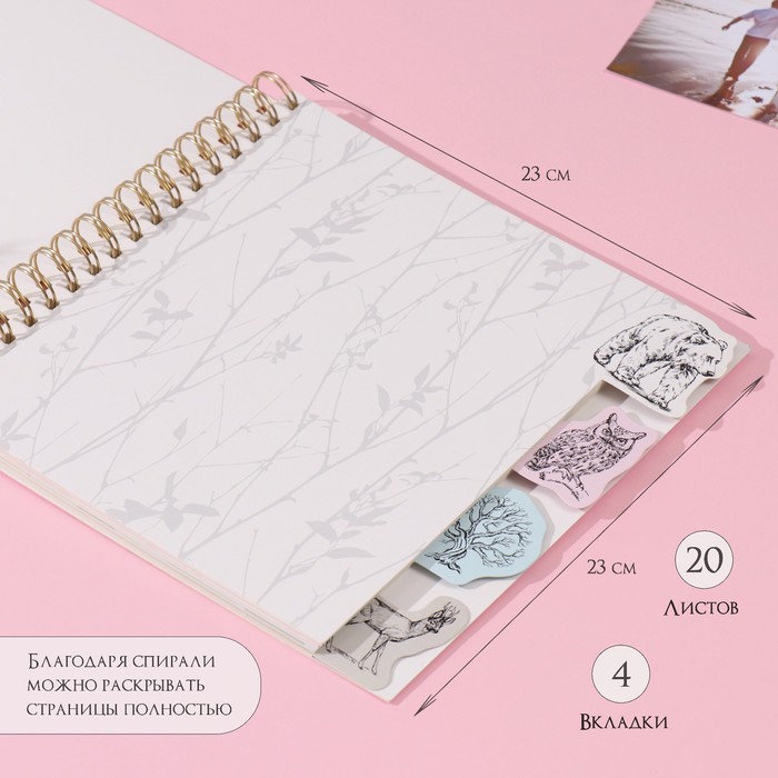 Фотоальбом на спирали 20 листов «Контур. Природа», объёмный элемент и 4 вкладки, 24×24 см