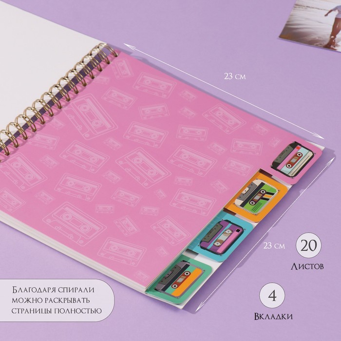 Фотоальбом на спирали 20 листов «Магнитофон», объёмный элемент и 4 вкладки, 24×24 см