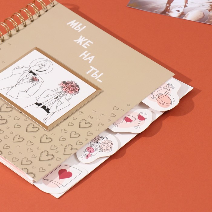 Фотоальбом на спирали 20 листов «Мы женаты», объёмный элемент и 4 вкладки, 24×24 см