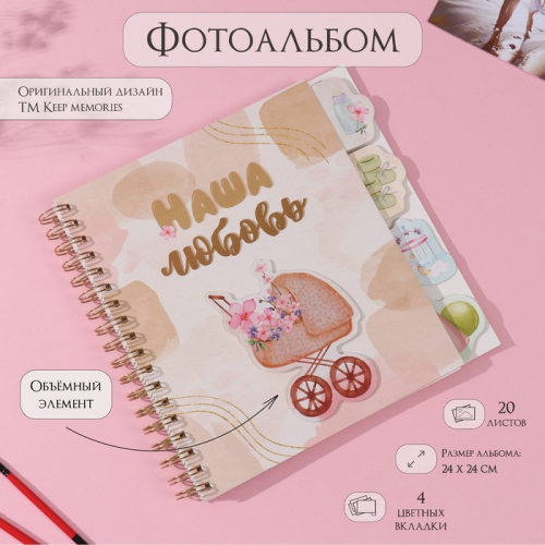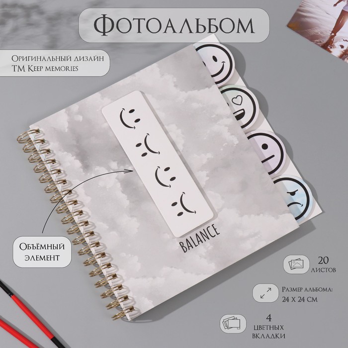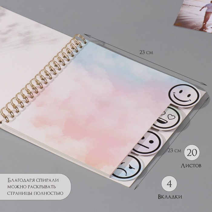Фотоальбом на спирали 20 листов «Облака», объёмный элемент и 4 вкладки, 24×24 см