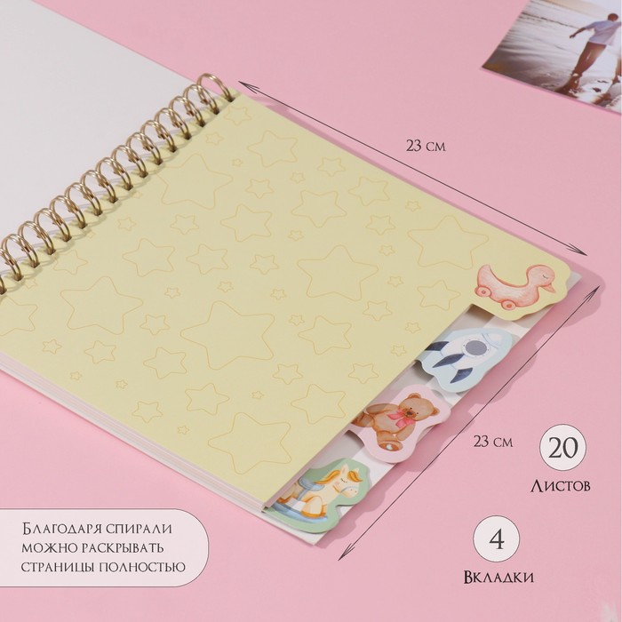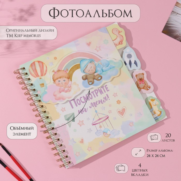 Фотоальбом на спирали 20 листов «Посмотрите на меня!» объёмный элемент и 4 вкладки, 24×24 см