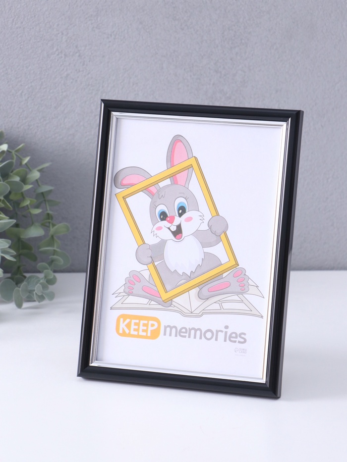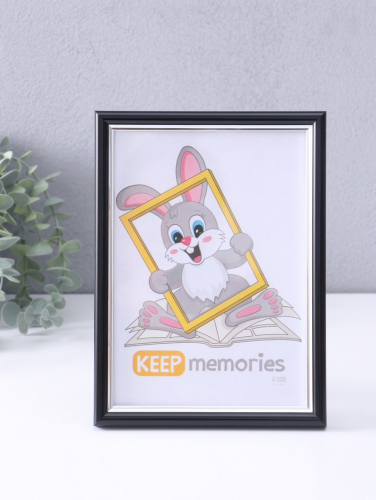 Фоторамка для фото 15×21 см Keep memories «Гамма», пластик, чёрный с серебром, (пластиковый экран)