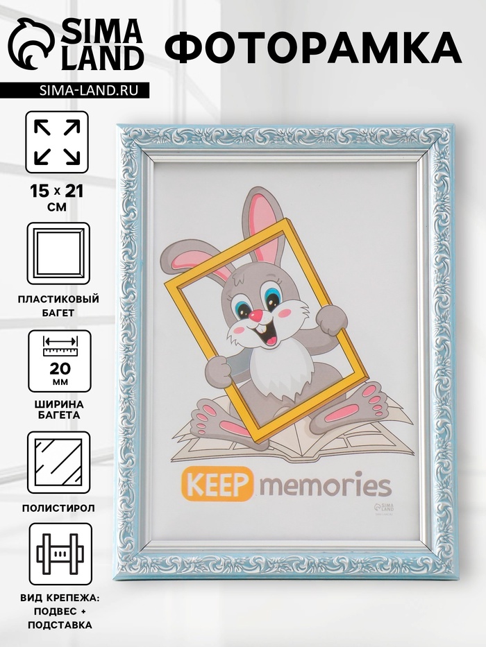 Фоторамка для фото 15×21 см Keep memories «Винтаж», пластик, голубой, (пластиковый экран)