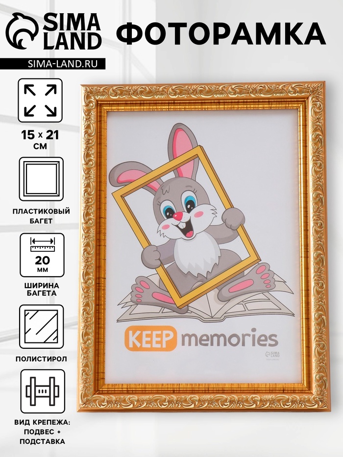 Фоторамка для фото 15×21 см Keep memories «Винтаж», пластик под золото, (пластиковый экран)