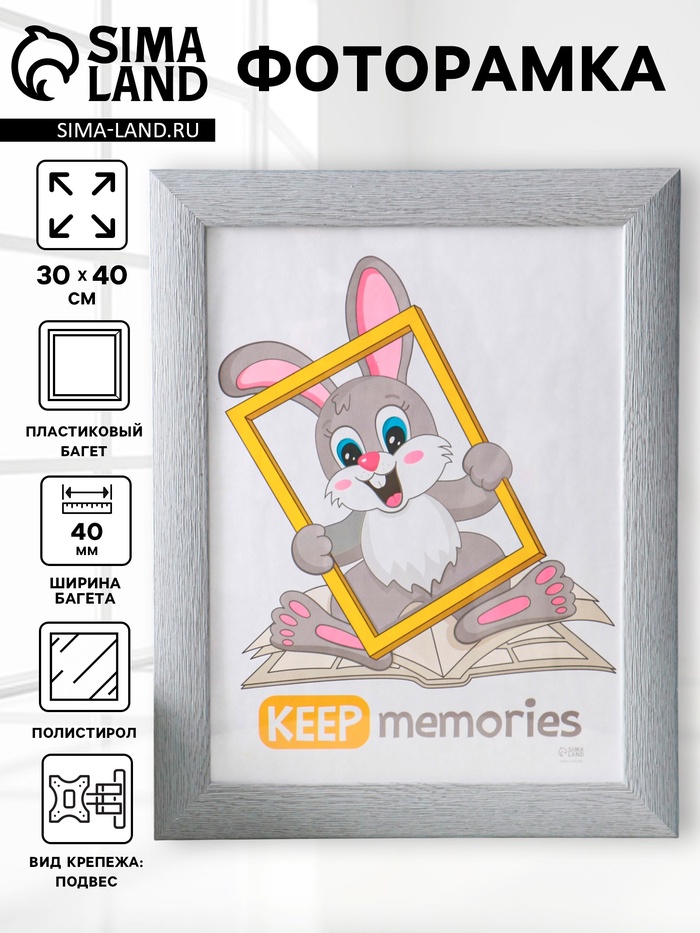 Эта серая фоторамка для снимков 30 на 40 — лаконичный акцент для интерьера. Узкая пластиковая рама серо-голубого оттенка и прозрачный экран из полистирола надёжно сохранят вашу фотографию от пыли и выцветания. Лаконичный дизайн без паспарту подчеркнёт значимость одного, самого важного кадра — портрета, пейзажа или семейного момента. Лёгкую рамку можно повесить на стену, создав персональную галерею воспоминаний.