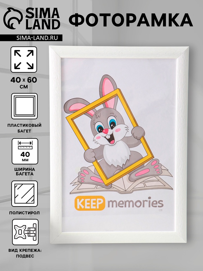 Фоторамка для фото 40×60 см Keep memories Luxe Elegance, пластик, белый, (пластиковый экран)