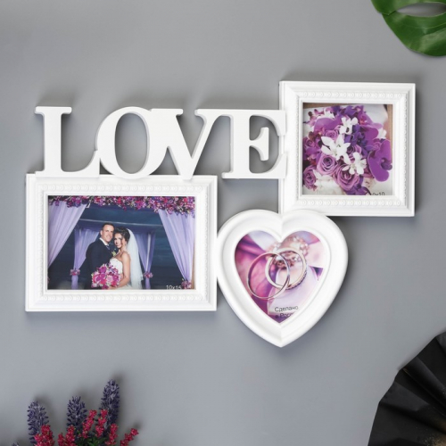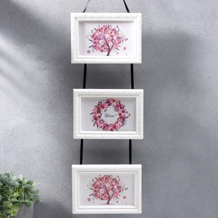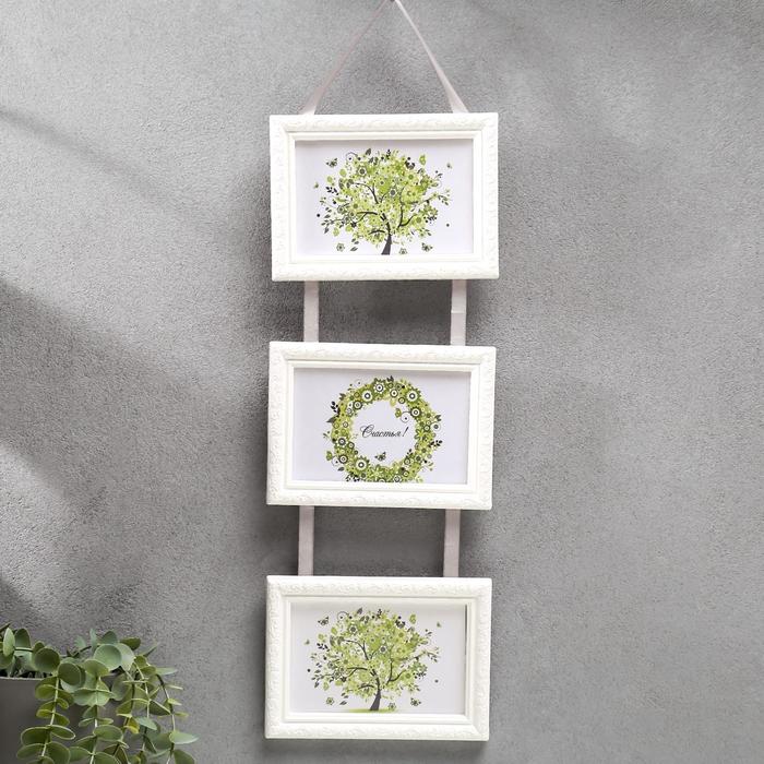Фоторамка - коллаж на 3 фото 10×15 см «Тройная на тесьме», белый