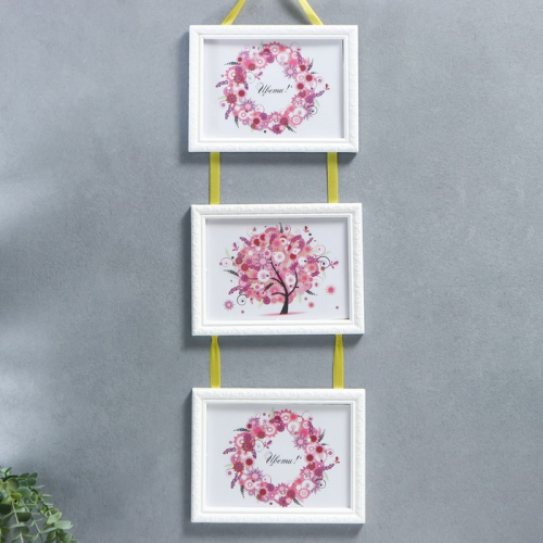 Фоторамка - коллаж на 3 фото 15×21 см «Тройная на тесьме», белый, (пластиковый экран)