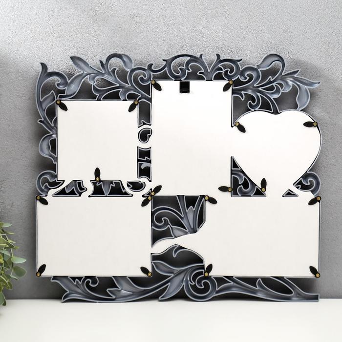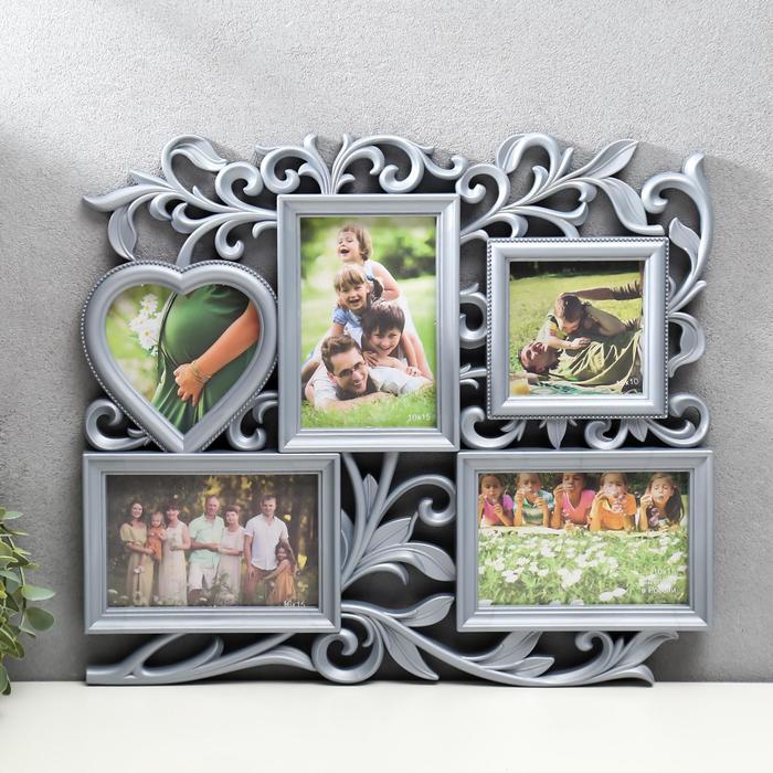 Фоторамка - коллаж на 5 фото «С сердцем», под серебро, (пластиковый экран)