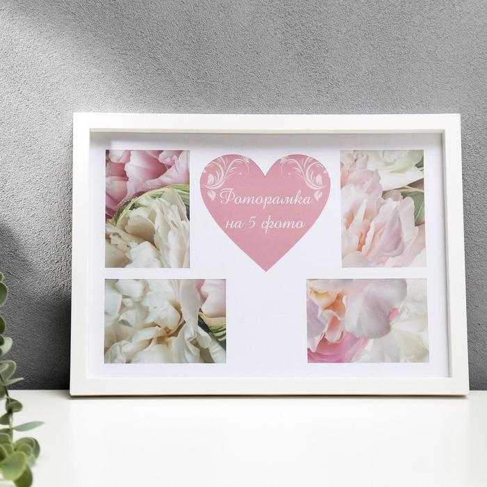 Фоторамка - коллаж на 5 фото «Сердце», пластик, белый, (пластиковый экран)