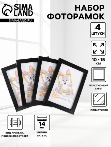 Набор фоторамок для фото 10×15 см Keep memories «Формат», 4 шт., белый, (пластиковый экран)