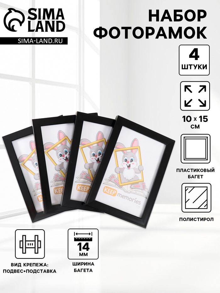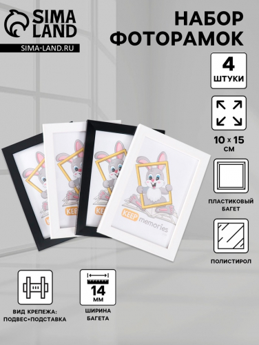 Набор фоторамок для фото 10×15 см Keep memories «Формат», 4 шт., чёрный, (пластиковый экран)