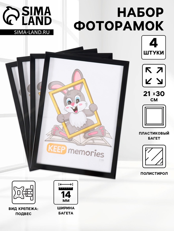 Набор фоторамок для фото 21×30 см Keep memories «Формат», 4 шт., чёрный, (пластиковый экран)