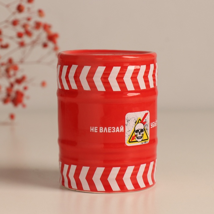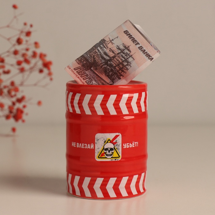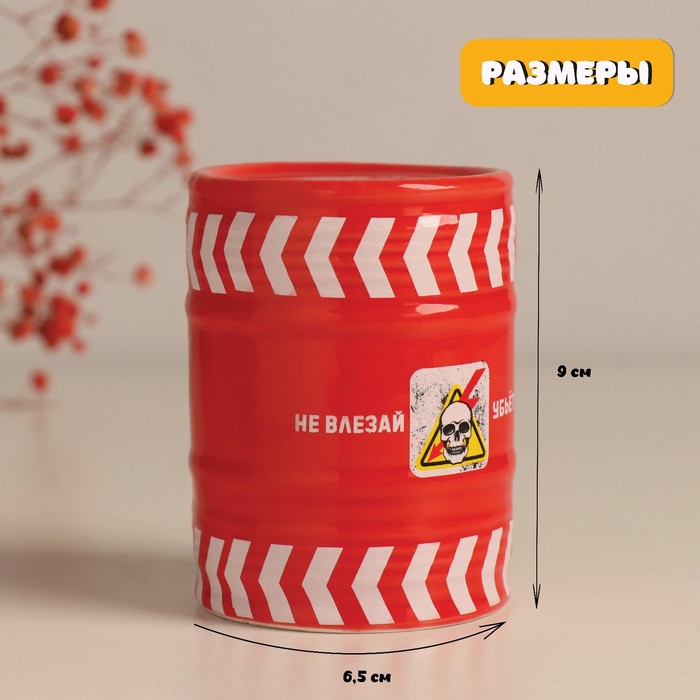 Копилка для денег «Банка-бочка. Не влезай убьёт!», керамика, красная, 6.5×6.5×9 см