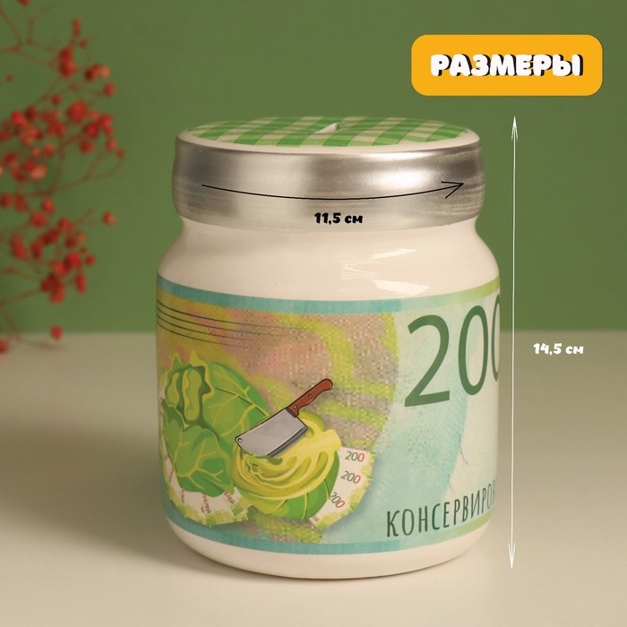 Копилка для денег «Банка. Капуста консервированная», керамика, 11.5×11.5×14.3 см
