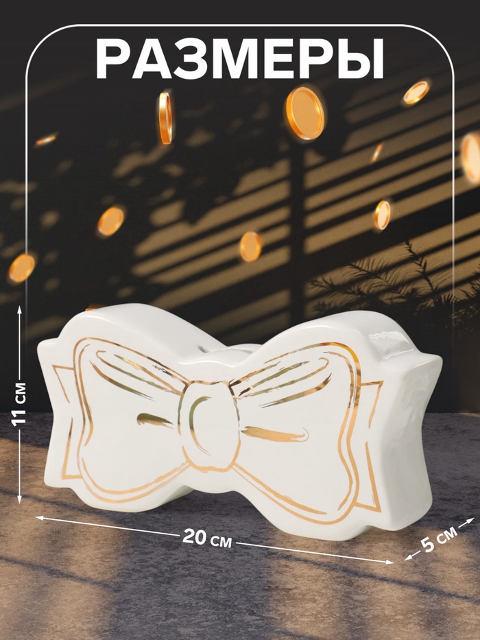 Копилка для денег «Белый бант», керамика, 20×5×11 см