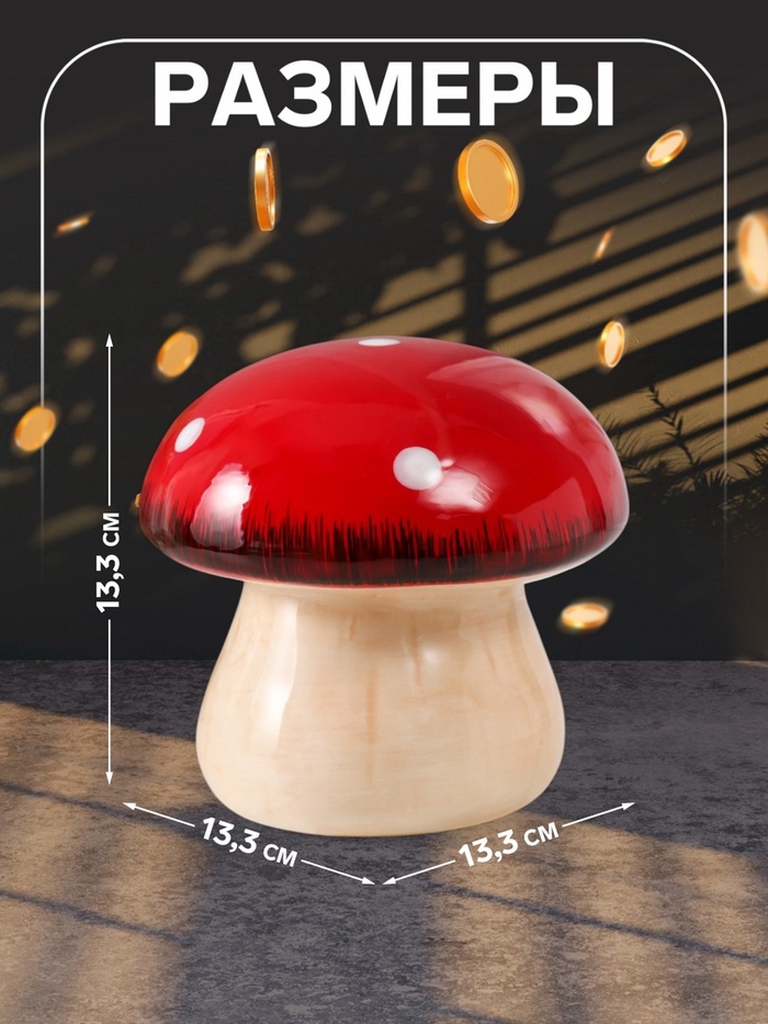 Копилка для денег «Мухоморчик», керамика, 13.3×13.3×13.3 см