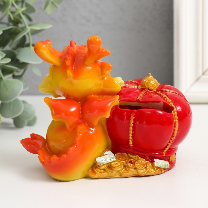 Копилка для денег «Огненный дракоша с коронной», полистоун, 11.5×7×9 см, МИКС