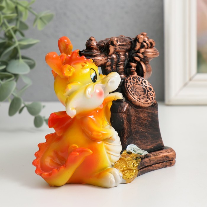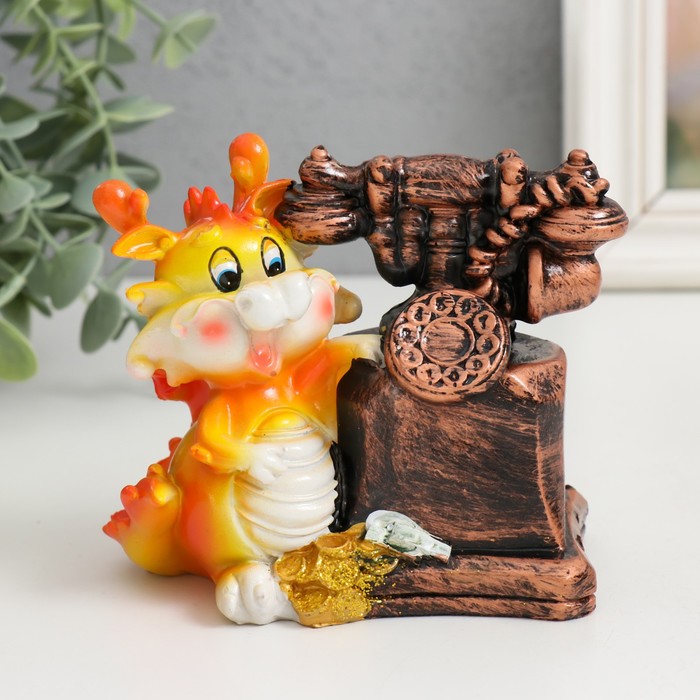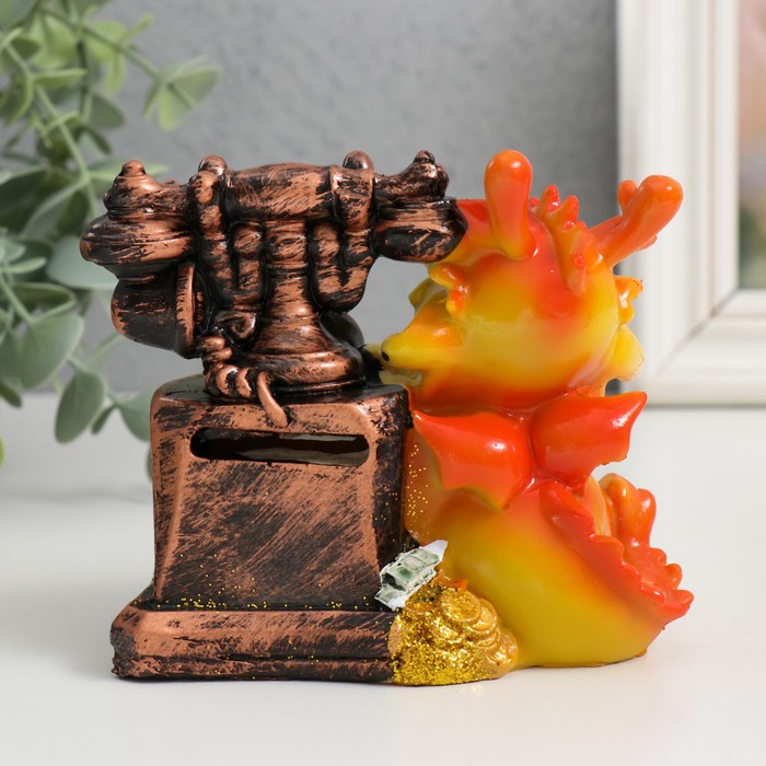 Копилка для денег «Огненный дракоша с ретро телефоном», полистоун, 11×7×10.5 см, МИКС