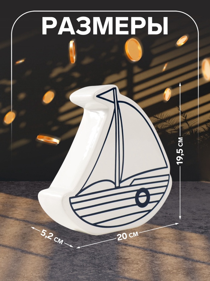 Копилка для денег «Парусник», керамика, белый, 20×5.2×19.5 см