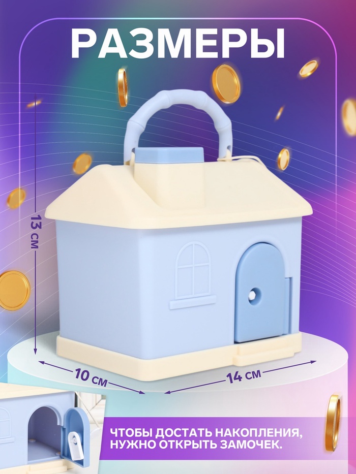 Копилка для денег с замком и ключом «Домик в нежных тонах», наклейки и декор для украшения, пластик, 14×10×13 см, МИКС