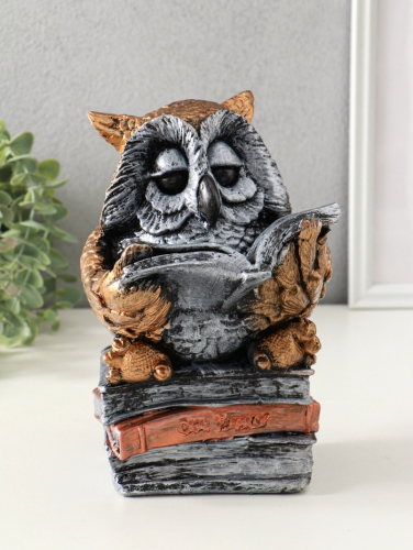 Копилка для денег «Сова с книгой», гипс, 25×18 см, под бронзу с серебром