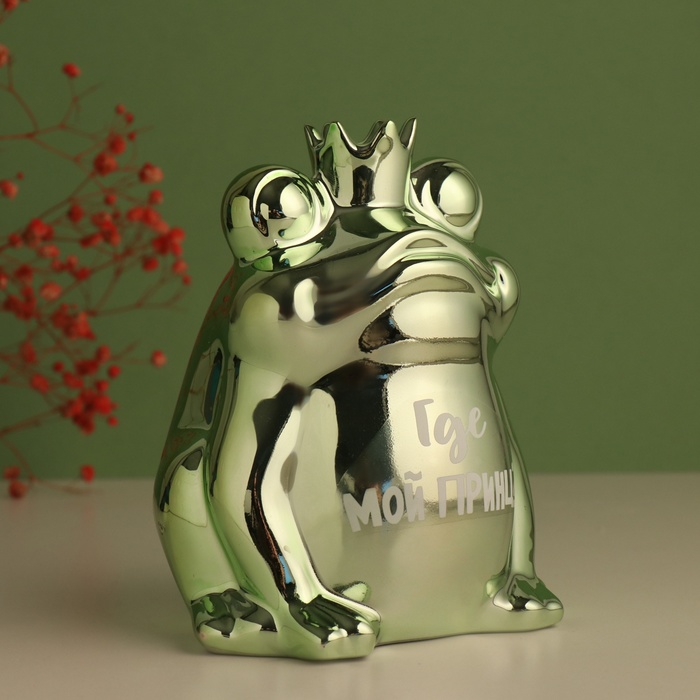 Копилка для денег «Зелёная лягушка: Где мой принц?», керамика, 12×10.5×15 см
