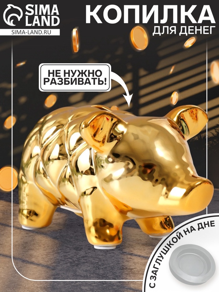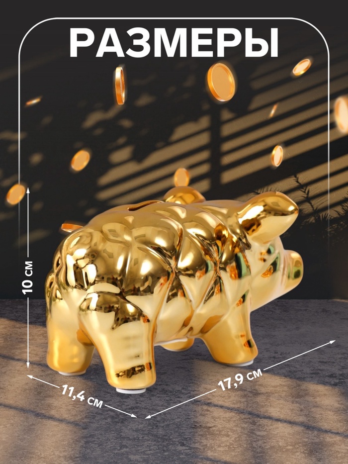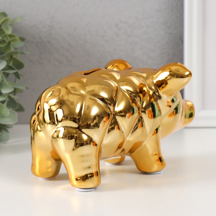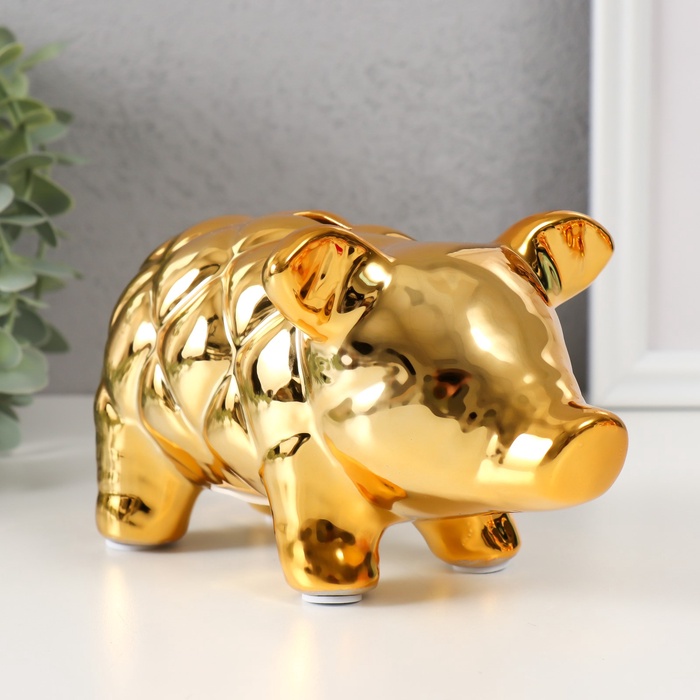 Копилка для денег «Золотая свинка», керамика, каретная стяжка, 17.9×11.4×10 см