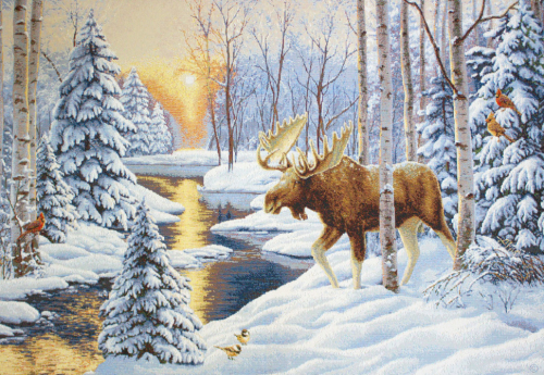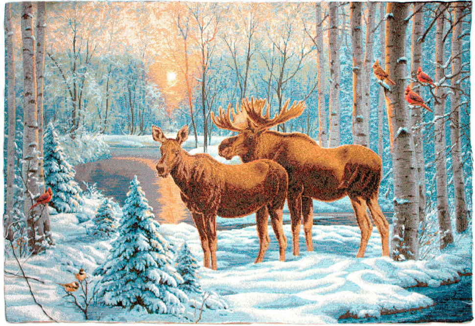 Огромный выбор расцветок купонов из гобелена. Костромской заповедник в зимнем лесу прекрасно впишется в интерьер вашего дома. Белый цвет гобелена символизирует свет, чистоту и совершенство. Олень — это благоприятный символ, ассоциирующийся с Солнцем, восходом, светом и чистотой.