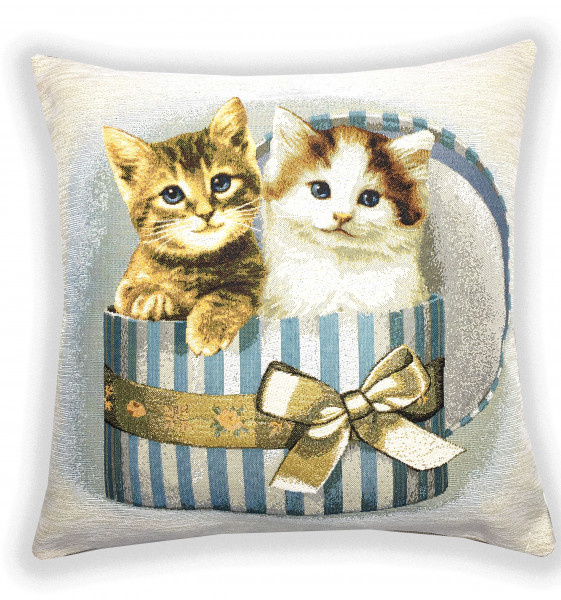 Котята в коробке полоска золотой бант - гобеленовая наволочка