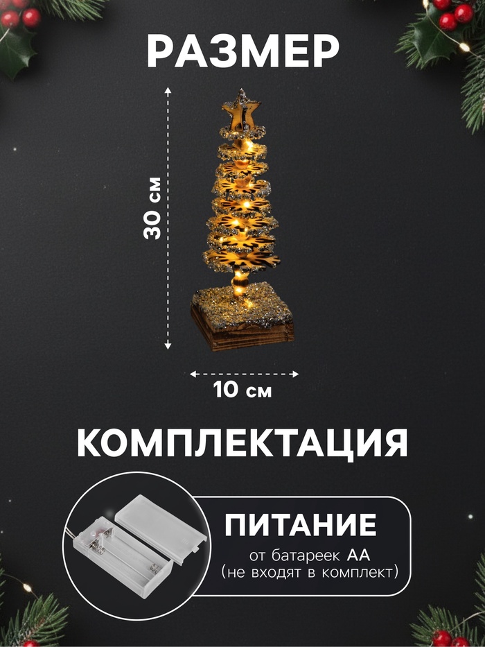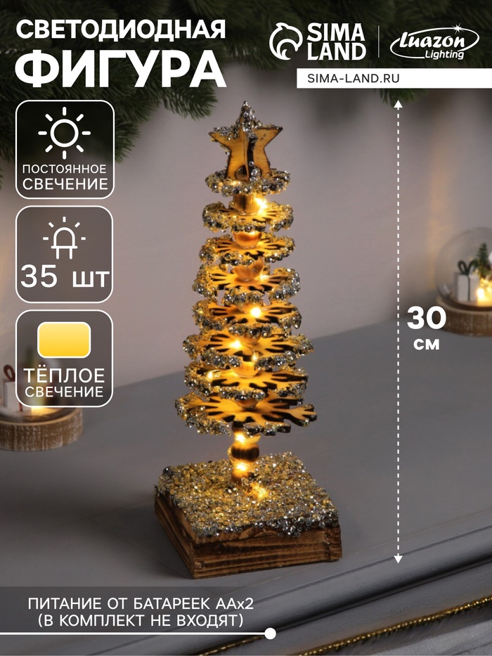 Фигура деревянная «Ёлочка», 30×10×10 см, 35 LED, от батареек AAx2, свечение тёплое белое