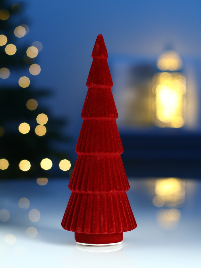 Фигура светодиодная «Ёлка красная бархатная», 5 LED, 23 см, от батареек AG13×3, свечение тёплое белое