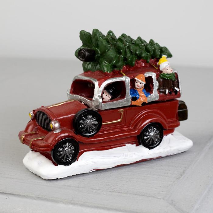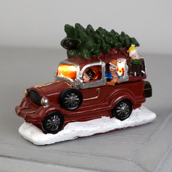 Светодиодная фигура «Автомобиль с ёлкой», батарейки AG10×3 ( в комплекте), свечение тёплое белое