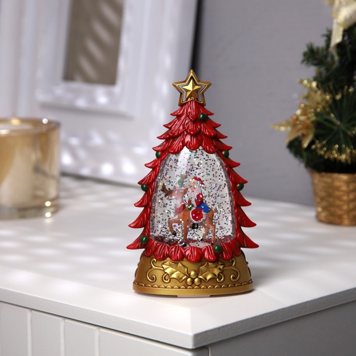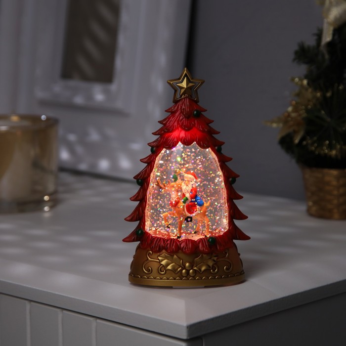 Светодиодная фигура «Дед Мороз на олене» 9×15×4 см, пластик, от батареек АААх2, свечение тёплое белое