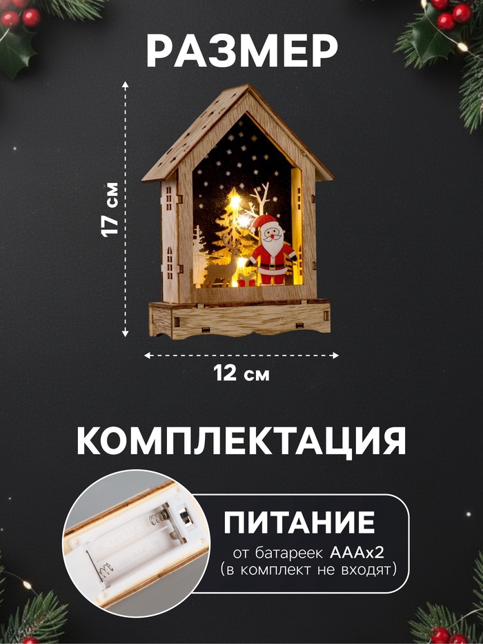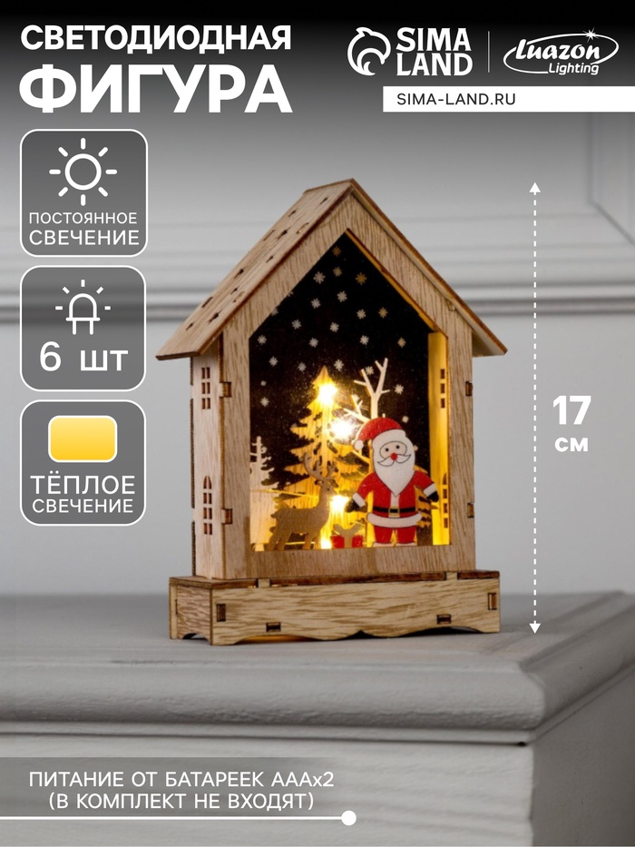 Светодиодная фигура «Дом с Дедом Морозом» 12×17×4 см, дерево, от батареек АААх2, свечение тёплое белое