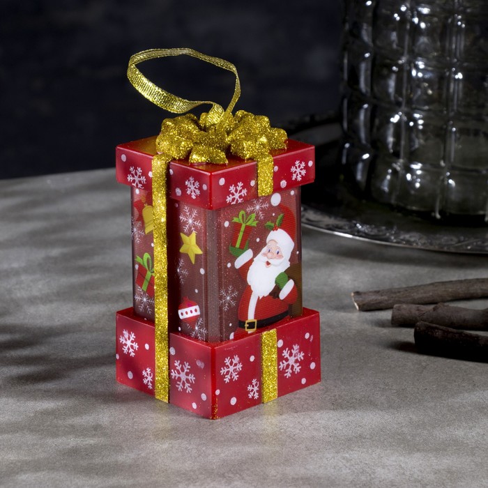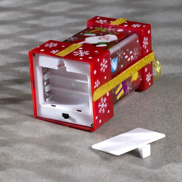 Светодиодная фигура «Красный подарок с Дедом Морозом» 6.3×11.5×6.3 см, пластик, от батареек АААх3, эффект пламени