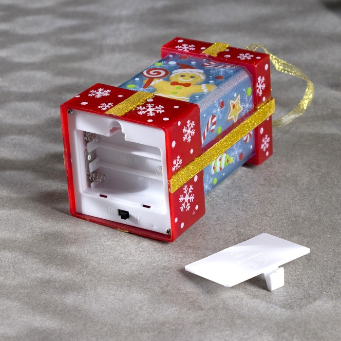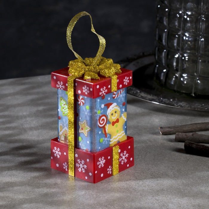Светодиодная фигура «Красный подарок с пряником» 6.3×11.5×6.3 см, пластик, от батареек АААх3, эффект пламени