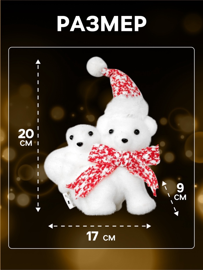 Светодиодная фигура «Медведица с медвежонком» 20×17×9 см, флок, от батареек CR2032×2, свечение тёплое белое