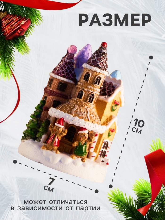 Миниатюрный светодиодный замок с тёплым белым свечением привносит в пространство нотки сказочности и уюта. Его компактные размеры 10 × 7 см позволяют использовать фигурку как самостоятельный элемент декора или гармоничную часть праздничной композиции.