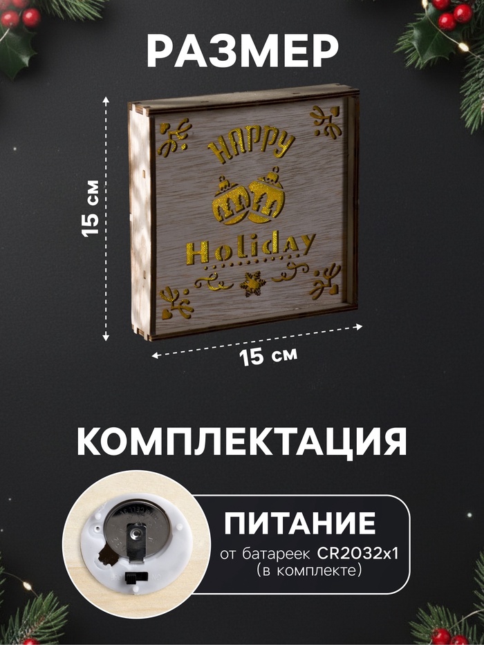 Светодиодная фигура «Счастливые каникулы» 15×15×4 см, дерево, от батареек CR2032×1, свечение тёплое белое
