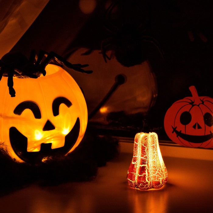 Светодиодная фигура «Тыква» 6×9×6 см, пластик, батарейки AG13×3 (в комплекте), свечение тёплое белое