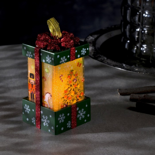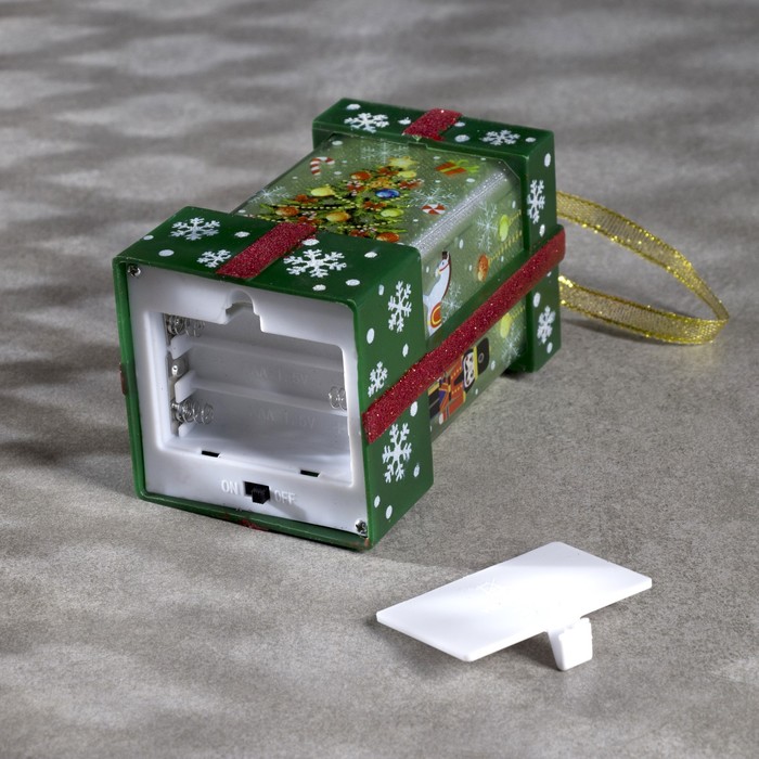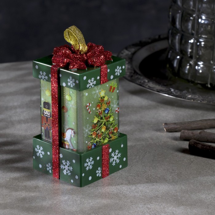 Светодиодная фигура «Зелёный подарок с ёлкой» 6.3×11.5×6.3 см, пластик, батарейки АААх3 (не в комплекте), эффект пламени